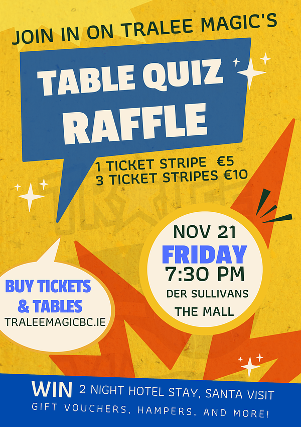 If you’d like to support the club but can’t make it on the night, you can donate a spot prize. Please email traleemagicpro@gmail.com to arrange—thank you.