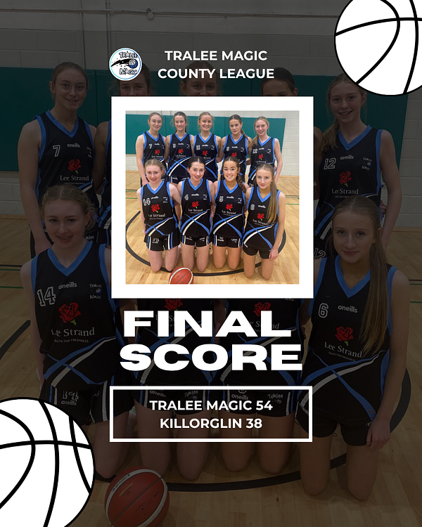 Tralee Magic’s U16 girls, suited up in black and blue, turned in a big performance in Mounthawk to take a 54–38 win over KCYMS in Division 1.