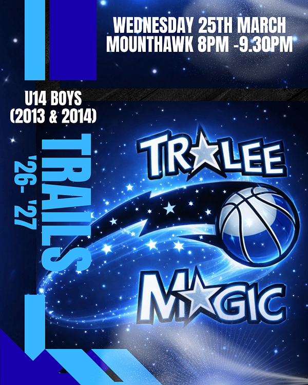 A reminder that tonight’s U14 Boys trial session in Mounthawk will now run from 8pm to 9.30pm.